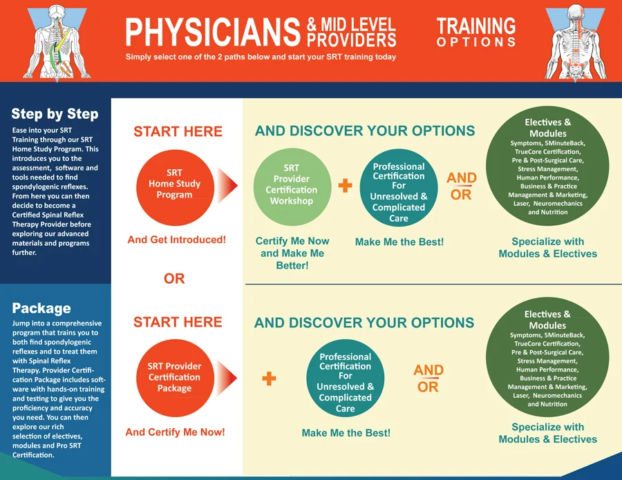 SRA Diagnostics and Treatment Training is available for Doctors of Chiropractic, Doctors of Osteopathy, Medical Doctors, Physician Assistants, Physiatrists, Orthos, Naturopathic Doctors, Nurse Practitioners, Oriental Medicine Doctors, and Acupuncturists.